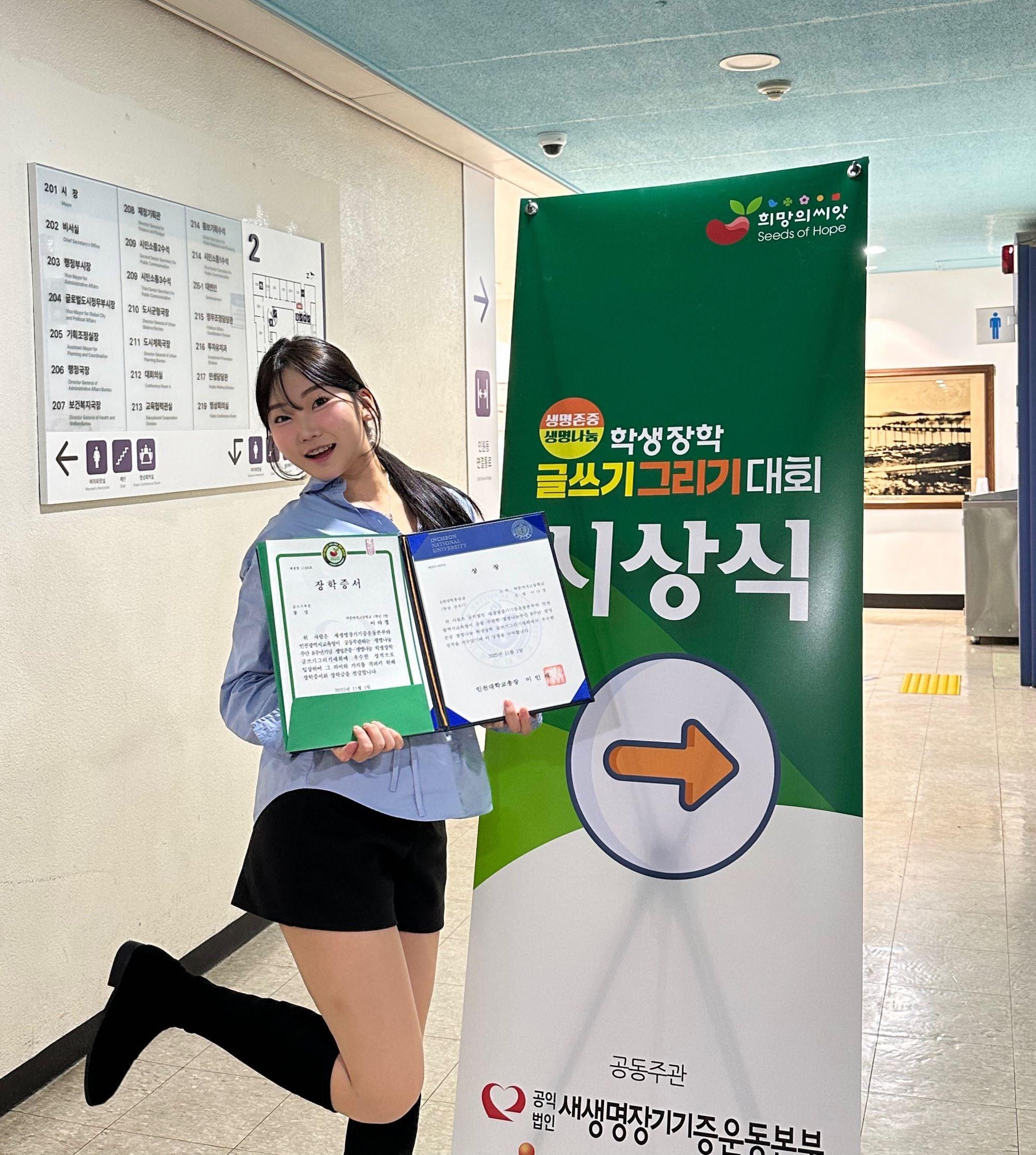 안녕하세요! 구월SBS아카데미미용학원입니다. 인천시청 본관에서 지난번 개최했었던 새생명 글쓰기 그리기 대회 시상식이 진행되었습니다~ 이번 시상식에서 6명의 구월캠퍼스 수강생들이 장학증서와 상을 받았답니다👏🏻 뿐만 아니라 인천.부천.김포 SBS아카데미뷰티스쿨 “주선미 대표님”과 구월캠퍼스 김솔잎 원장님, 부평,서구,부천캠퍼스 원장님께서 장학증서 전달을 해주셨습니다~ 동상(인천대학교 총장상) - 이다경 수강생(장학금 30만원)♥ 동상(인천대학교 총장상) - 구성률 수강생(장학금 30만원)♥ 동상(인하대학교 총장상) - 장연서 수강생(장학금 30만원)♥ 가작(재능대학교 총장상) - 강민서 수강생(장학금 10만원)♥ 가작(경인여자대학교 총장상) - 이지효 수강생(장학금 10만원)♥ 장려상(재능대학교 총장상) - 임유희 수강생(장학금 5만원)♥ 앞으로 있을 다양한 행사와 뜻깊은 일에 구월SBS아카데미미용학원의 참여를 기대해주세요❤️ ▶수강문의 032)434-0630