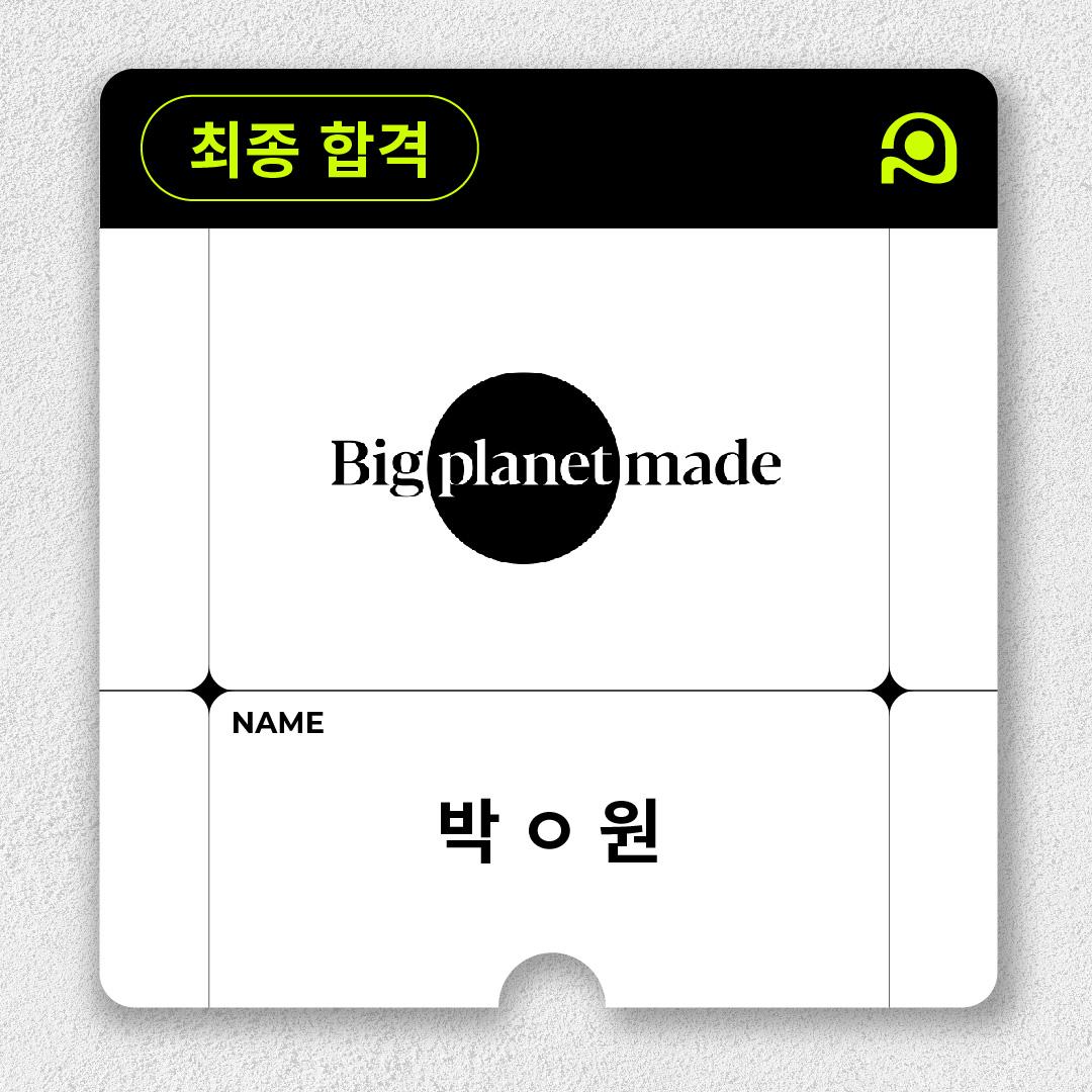 Big planet made 박 ㅇ 원 학생 최종합격을 축하합니다! ☺️
