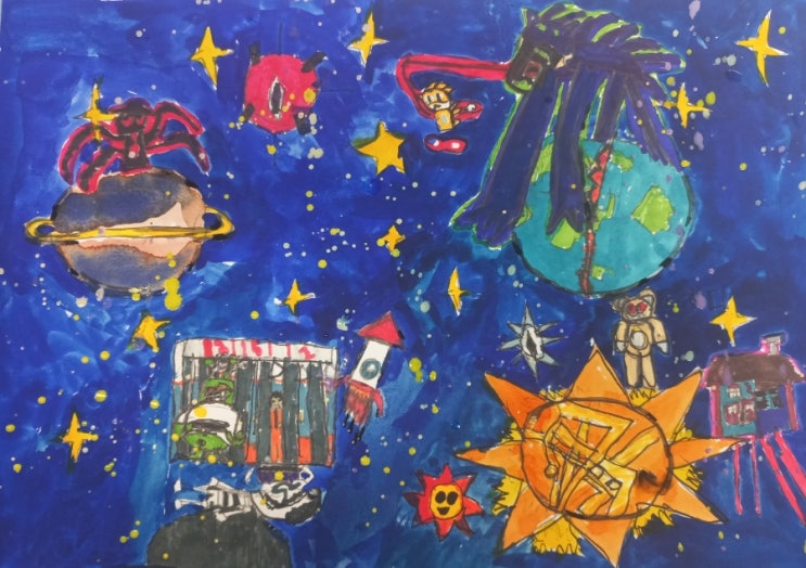 (구래동미술학원 마산동미술학원)4학년 은찬이의 우주 상상화 그리기