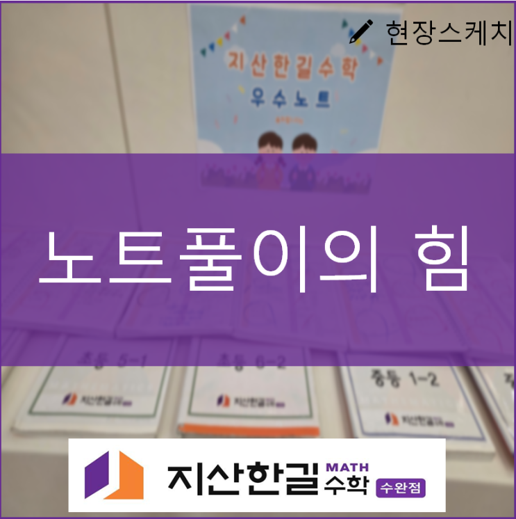 안녕하세요, 지산한길수학 수완점입니다 :) 수학 실력을 제대로 키우는 방법, 노트 풀이의 힘 “왜 굳이 노트에 풀어야 할까요?” 학생들과 수업을 하다 보면 종종 듣는 질문이 있습니다. “책에 바로 풀면 안 되나요?”라는 이야기인데요. 사실 이 질문에는 ‘빠르게 끝내고 싶은 마음’이 담겨 있는 경우가 많습니다. 하지만 수학은 속도보다 방향이 더 중요한 과목입니다. 저희가 모든 문제를 노트에 풀이하도록 지도하는 이유는 단순합니다. 수학은 ‘눈으로 이해하는 공부’가 아니라 ‘손으로 정리하며 완성하는 공부’이기 때문입니다. 문제를 노트에 옮겨 적는 순간, 학생은 자연스럽게 문제를 한 번 더 읽고 구조를 파악하게 됩니다. 그....... <img src="https://blogthumb.pstatic.net/MjAyNjA0MTVfMjkz/MDAxNzc2MjUwMTUzMDYy.2gMR73NcE3PS11Gaobx1Y6CnuXP32O2AihcSjCDjy7Ig.vnuRKz4Mt2_L2_OMnasfNRBVML2RC2Blh_Mem0sVbHcg.PNG/%B3%EB%C6%AE.png?type=s3" />