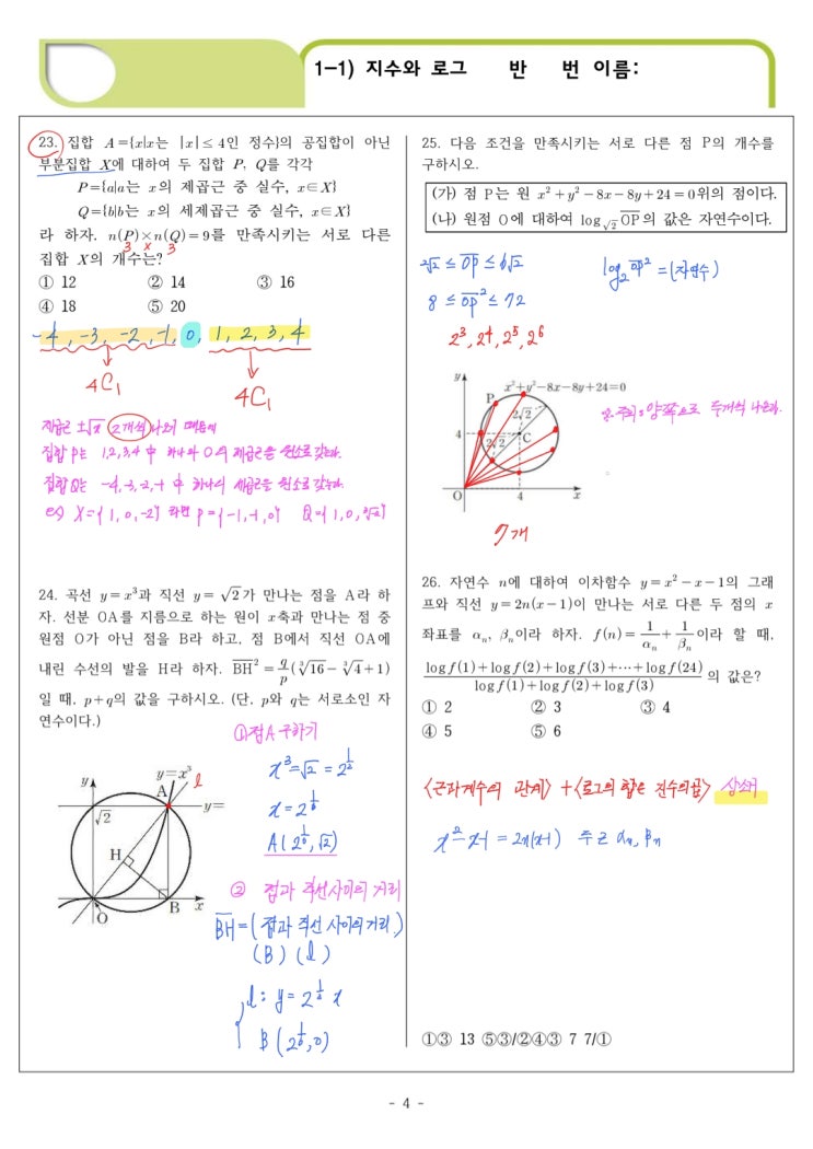 26년 구성고 2학년 1학기 중간 수학 학교프린트(대수) 손풀이