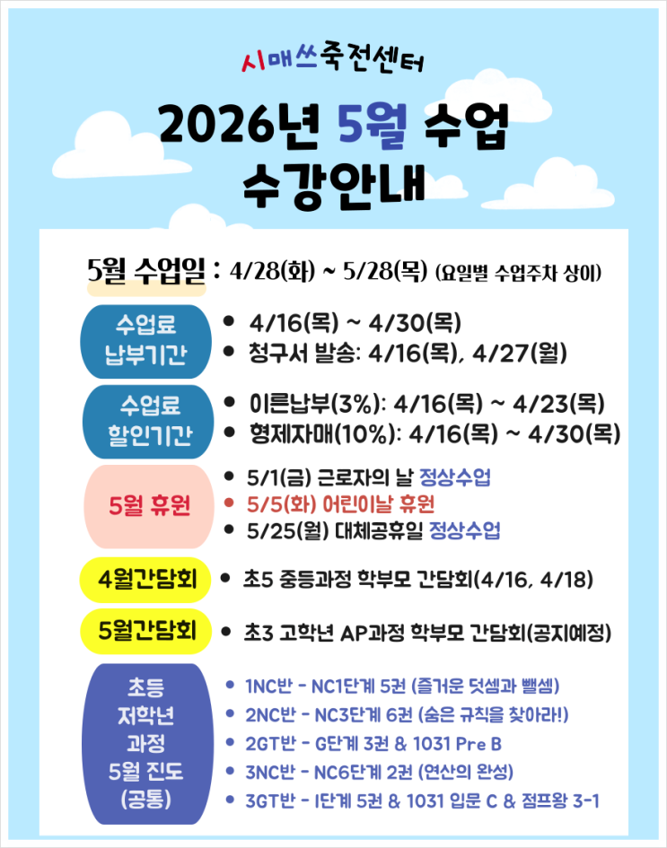 [죽전보정 수학] 시매쓰죽전 5월 수강안내