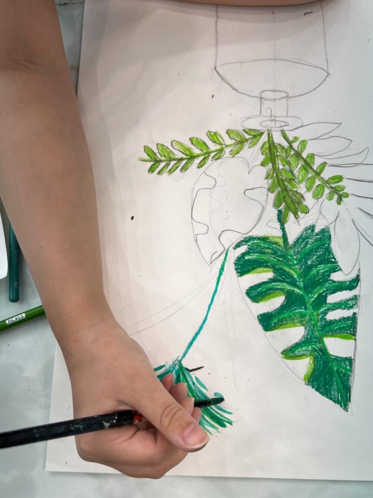 감성 가득, 관찰의 즐거움 싱그러운 초록이 가득했던 오늘 우리 아이들의 책상 위 단순히 그리는 것을 넘어, 실제 잎사귀의 결을 만져보고 화병에 비친 줄기의 모양을 찬찬히 관찰해 보는 시간이었어요. 직접 오리고 붙이며 입체감까지 더해주니, 아이들의 도화지 속에 작은 정원이 생겼네요! 노란 배경과 초록 잎의 대비가 마치 여름날의 햇살처럼 따스하지 않나요? ☀️ 우리 아이들의 손끝에서 탄생한 싱그러운 에너지를 함께 느껴보세요. #어린이미술 #꼬마화가 #관찰미술 #정물화그리기 #초록초록 아이들의정원 미술교육 창의미술 힐링미술 <img src="https://blogthumb.pstatic.net/MjAyNjA0MTdfMzUg/MDAxNzc2Mzg1NTAxMzA5.zD7WQigRl21FxJYgqkNuOjolEd8HmYX2RVjeOWOs6Dwg.oUIi5cFLT6uPX9cxBj994aCG3muVZExvUDt0M6ZXz_Ig.JPEG/95EA4A0B%A3%ADC281%A3%AD44B2%A3%ADA8F9%A3%ADE2E30C7E308E.jpg?type=s3" />