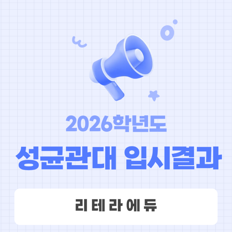 안녕하세요! 리테라에듀입니다. 오늘은 2026학년도 성균관대 입시결과에 대하여 알아보고자 합니다. 성균관대는 매년 4월 중순경 입학처 홈페이지에 입시결과를 공개합니다. 수시 학생부교과 전형을 제외한 나머지 전형은 합격자들의 입학 성적을 공개하지 않아 아쉬운 점은 있습니다. 그러나 정량평가 전형인 학생부교과 전형 입결을 공개한 것 만으로도 대략 지원선을 확인할 수 있다는 점은 매우 긍정적입니다. 관련 자료를 참고하시어 2015개정교육과정 마지막 해인 올해 지원에 유용하게 활용하시기 바랍니다. 설명 영상은 하단 유튜브 링크를 클릭해 시청해주시면 됩니다. 2026학년도 성균관대 입시결과 유튜브 영상 https://youtu.be/MzJL....... <img src="https://blogthumb.pstatic.net/MjAyNjA0MThfMzkg/MDAxNzc2NDk4MjkzMTE4.uy6SO9ud5dE0m7Jj7poKZ01eHsl-DjKZDm_wSY_9-I0g.NY1YMLp5ekn2yG8v_f83rfY8kbjBudEhBt0Ub1zlz9Ig.PNG/111.png?type=s3" />