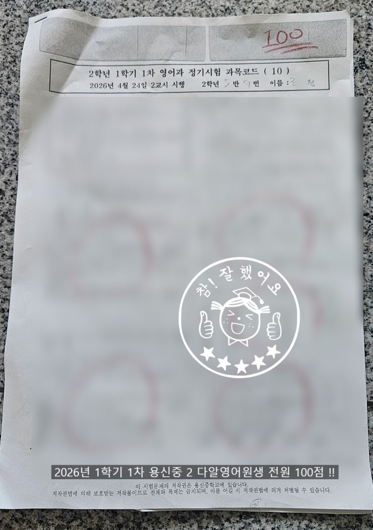 이번 겨울방학, 아이들과 함께 39일을 달렸습니다. 39일 동안 한 것들 오전 9시부터 오후 7시까지. 핸드폰 없이, 음악 없이, 졸리면 서서라도 버텼습니다. 매일 한달·한주·하루 계획표를 직접 세우고 지켰습니다. 스스로 오는 습관부터 만들었습니다. 초등 6학년부터 고등학교 3학년까지, 학년도 달랐지만 같은 공간에서 같은 루틴으로 함께했습니다. (아래 링크 참고) 그리고 중간고사 결과 (축) 용신중 2·3학년 다알영어 원생 전원 영어 100점 !! 39일 동안 바뀐 건 의지가 아니었습니다 흔히 공부는 의지의 문제라고 합니다. 하지만 39일을 함께 지내보니 달랐습니다. 가장 크게 바뀐 건 공부하는 방법이었습니다. 입시 영어는 문제를 많이 푼....... <img src="https://blogthumb.pstatic.net/MjAyNjA0MjRfMjg2/MDAxNzc3MDM1ODEwNjM3.DHSg_BqdU3ZzegE-dFu8WB2Rg45HecJFHFPhCKJ-DqAg.ezw0zAybqNmchUsEjEJjWe2ewo3EtCmkVyVY5MSQyj8g.JPEG/555.jpg?type=s3" />