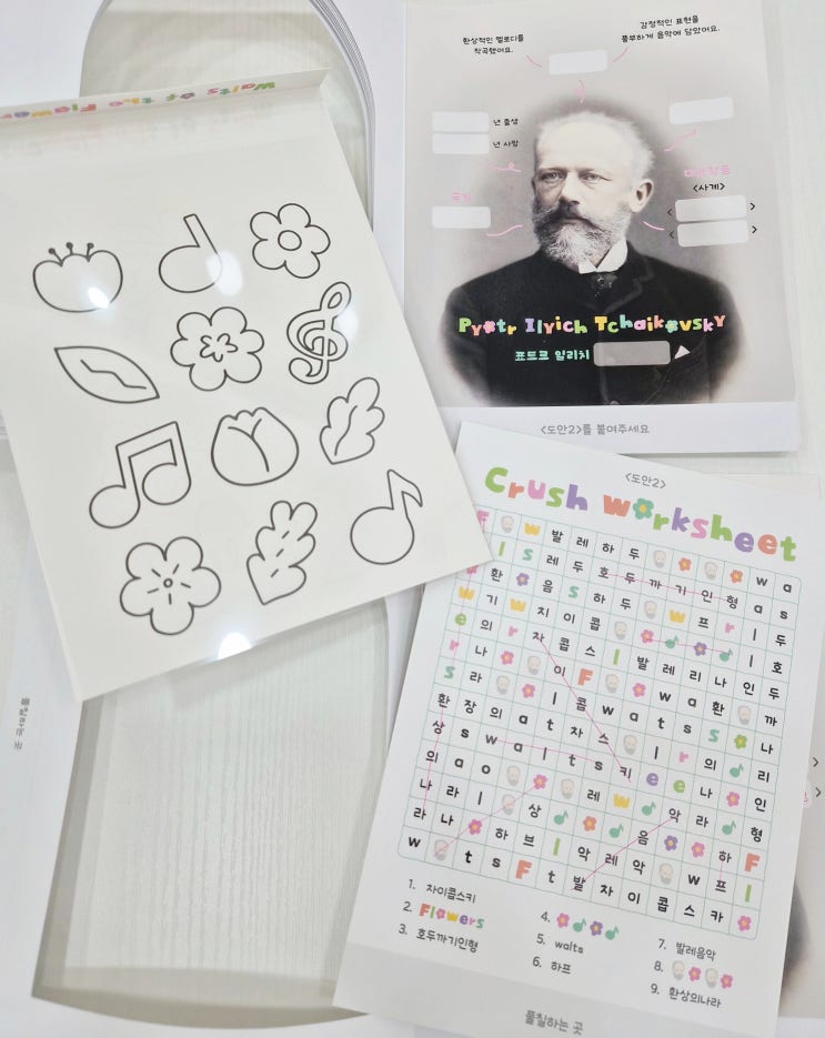 4월 예술융합특강 차이콥스키 꽃의 왈츠 따뜻한 봄과 잘 어울리는 클래식 음악, 차이콥스키의 꽃의 왈츠로 4월 예술융합특강을 진행했어요 단순히 듣는 음악이 아니라 듣고, 보고, 느끼고, 이해하고 표현하는 수업으로 아이들과 함께했습니다 음악감상 ⚘️꽃이 춤추는 순간을 상상해요 아이들과 함게 꽃의 왈츠를 감상하며 음악 속 분위기를 자유롭게 이야기 해보았어요 각자 느끼는 장면을 말로 표현하며 음악을 이미지로 연결하는 시간을 가졌습니다 ✔️차이콥스키는 어떤 작곡가일까? ✔️꽃의 왈츠는 어떤 이야기 속 음악일까? ✔️음악의 분위기는 어떻게 변할까? 우리 친구들 워크지를 통해 차이콥스키가 발레음악 호두....... <img src="https://blogthumb.pstatic.net/MjAyNjA0MjNfNzIg/MDAxNzc2OTI0MDkxMzk0.SfRNE4HVD6Li-tFg-IOGwBUaWya67dOw3JIrFgfhmYgg.ThOoGGCCxKcbnLl7RZwWt1KL-uFAXtFALvKUwg6RjEMg.JPEG/KakaoTalk_20260423_142629488_08.jpg?type=s3" />