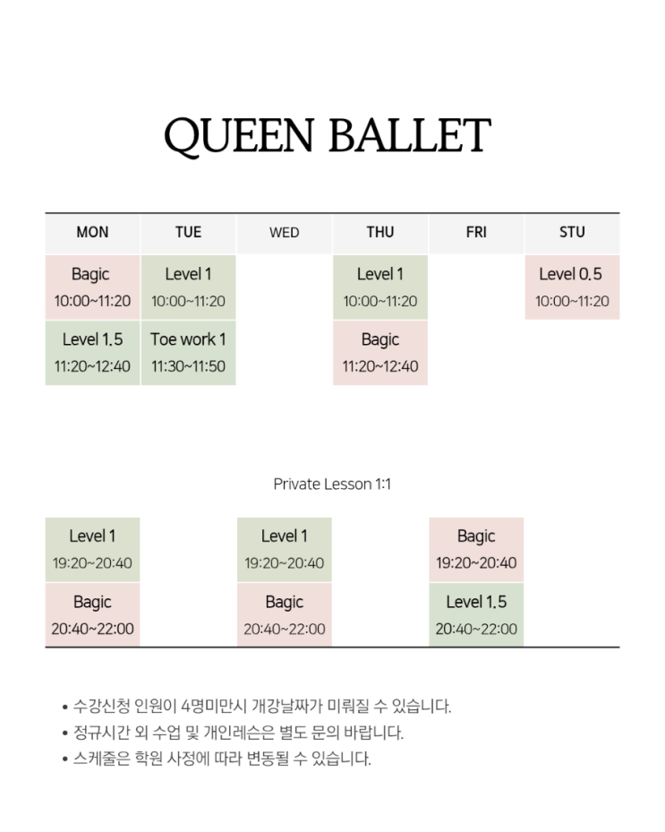 개강일 4월 30일 종강일 5월 27일 5월5일 휴무(개인레슨 합니다.) 5월1일, 25일 수업합니다. 월요일 레벨1.5 11:20 금요일 오후, 토요일 수업은 4명이상 모집시 시작됩니다. 문의 031-714-2240 카카오톡채널 '퀸발레 ' 광주광명초옆 #퀸발레 #신현성인발레 #능평성인발레 #분당성인발레 #능원성인발레 #경기광주발레 #경기광주성인발레 <img src="https://blogthumb.pstatic.net/MjAyNjA0MjBfNzUg/MDAxNzc2NjU1NDEwOTUz._9hF2q28ncpStLv28QIxA8ty6M6tMe9m0c9nUGA3y8Mg.aDBnfjqlG3hS--Hn4v24eMJmtI6rrsYAd4eAbiqP9W8g.PNG/900_%C8%AD%C0%CC%C6%AE_%B9%CC%B4%CF%B8%D6%C7%D1_%C7%CA%B6%F3%C5%D7%BD%BA_%C7%D0%BF%F8_%BD%C3%B0%A3%C7%A5_%C0%CE%BD%BA%C5%B8%B1%D7%B7%A5_%C6%F7%BD%BA%C6%AE_20260420_122252_0001.png?type=s3" />