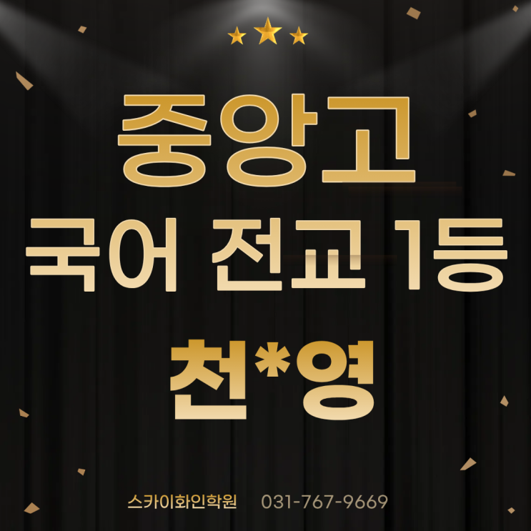 안녕하세요 독보적인 방법으로 결과를 만들어내는 스카이화인학원입니다 경기광주 국어학원, 경기광주 영어학원, 경기광주 수학학원, 경기광주 과학학원, 경기광주 입시학원 지난 3월 24일, 고등학교 1,2,3학년을 대상으로 3월 모의고사가 진행되었습니다 그 중 저희 스카이화인학원 출신 천*영 학생이 중앙고 2학년 재학생 중 전교 1등을 했다는 사실을 전해 들었습니다 축하합니다! 결과 자체도 의미 있지만, 더 중요한 건 이 결과가 어떻게 만들어졌는지입니다. 고등 국어, 왜 무너지는가 고등학교 국어는 중학교 국어와 완전히 다른 과목입니다 ✅ 암기로 해결되지 않는 문제 ✅ 처음 보는 지문 ✅ 제한된 시간 안에서 판단해야 하는 구조 그....... <img src="https://blogthumb.pstatic.net/MjAyNjAzMjdfMTg1/MDAxNzc0NjIwMDMyODk4.BwDTtWfyKWukSw6qQzfCz3_BXhZ8J-INMdsh-1Hf3K0g.2mmuZhchMmggzZCQv2kpL1_pcFqlpSVEf9tXFaysBPEg.PNG/%B1%B9%BE%EE_%C0%FC%B1%B3_1%B5%EE.png?type=s3" />