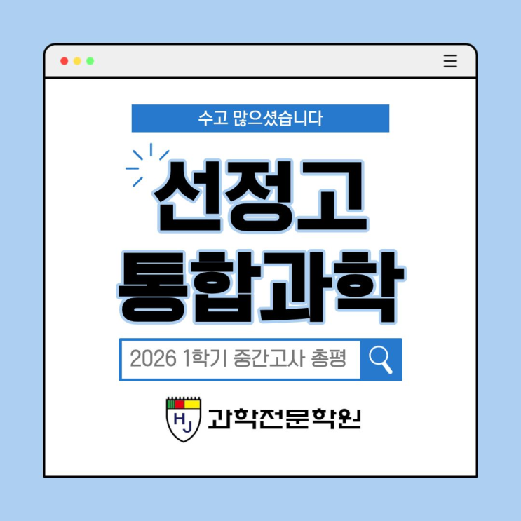 [은평구과학학원/노형주과학전문학원] 노형주과학전문학원과 함께하는 2026 1학기 선정고등학교 통합과학 시험대비