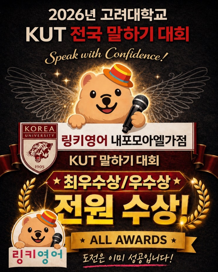 첫 도전, 그리고 시작 지난 4월 15일, 링키영어 내포모아엘가점의 고려대학교 영어 말하기 대회 첫 도전이 있었습니다. 준비 기간이 짧았고 참가 인원도 많아 부담이 있었던 것도 사실이지만, 아이들과 함께 도전하기로 결심하고 하나씩 준비해 나갔습니다. 준비 과정, 생각보다 더 진지했던 아이들 1주차 스크립트 작업을 시작으로 아이들의 영상을 받아 개별 코칭을 진행했습니다. 비슷한 부분에서 어려움을 느끼는 친구들은 따로 남겨 지도하고, 추가로 시간을 내어 코칭하며 많은 정성과 시간을 들여 준비했습니다. 그 과정에서 아이들이 대회를 점점 더 진지하게 받아들이고, 스스로 더 노력하는 모습이 느껴져 큰 감동으로 다가....... <img src="https://blogthumb.pstatic.net/MjAyNjA0MjZfMjUx/MDAxNzc3MTkyMzk3Nzc1.ltt6qLKRHUAjGh243KENDwv1F_TE1ipUN6NKUMobRKcg.O0ZklbP6VHVzqeYgqTfxVdIXaCnCdv1X93ap0NU0owYg.JPEG/8307ECF7%A3%AD4CF9%A3%AD4A5B%A3%AD990F%A3%ADE25ACD4307E7.jpg?type=s3" />