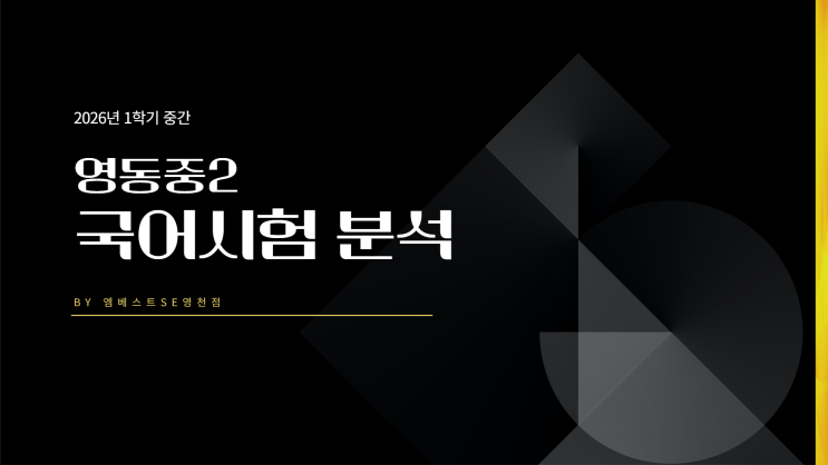이번 국어시험 성적이 불만족스럽거나 평소 국어가 고민이시라면 주목하세요~ 이번 영천영동중학교 국어시험 우리 아이들이 얼마나 열심히 준비했는지 잘 알고 있습니다. 하지만 단순히 열심히 하는 것보다 어떻게 출제가 되었고, 무엇을 묻고자 했는지 정확히 안다면 어떻게 시험을 준비해야 하고 어떻게 더 좋은 결과를 얻을 수 있을 것입니다. 영천 지역 내신대비 18년차의 짬바와 엠베스트se의 완전학습으로 무장한 #엠베스트se학원영천점 의 영동중학교국어시험 분석, 지금 시작합니다. 이번 영동중학교 중간고사 국어교과서는 해냄에듀 출판사이며 1.시선과 공감 2.적절한 표현, 정확한 읽기 단원에서 출제되었습니다. 이번 시험은 서술형....... <img src="https://blogthumb.pstatic.net/MjAyNjA0MzBfMjQ4/MDAxNzc3NTMyNTk3NTky.izpAYkhb7y2HWF-rCuRATzHqNHHnpeB9_Opzn4lYw_Qg.CA9fi2qIJy11EZ9jxdYOM9_LbE4wKSv0JJJhhKSRznYg.PNG/%C1%A6%B8%F1%C0%BB_%C0%D4%B7%C2%C7%CF%BC%BC%BF%E4_1.png?type=s3" />