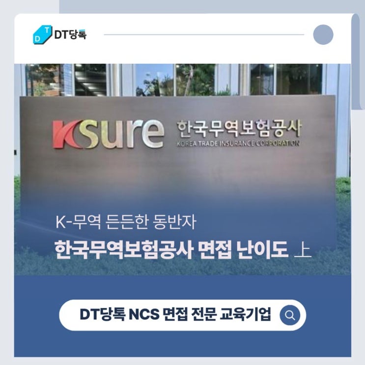 한국무역보험공사 면접, 신입사원 합격 전략 1. 한국무역보험공사 면접, 혼자 준비하면 흔들리기 쉬운 이유 한국무역보험공사 면접은 단순히 예상 질문 몇 개 외운다고 끝나는 전형이 아닙니다. 1차에서는 역량 평가와 팀프로젝트를 함께 대비해야 하고, 이후에는 경영진이 참여하는 다음 단계까지 이어질 수 있기 때문에 준비 방향이 분명해야 합니다. 특히 조사·인수와 IT 직무는 요구 역량이 다르기 때문에, 공통 답변만 들고 가면 경쟁력이 떨어지기 쉽습니다. 2. 왜 이 전형은 일반적인 공기업 준비 방식으로는 부족할까 많은 지원자가 공기업 전형을 준비할 때 가장 먼저 하는 실수가 있습니다. 기관 공통 인재상, 성실성, 협업 태도 같은....... <img src="https://blogthumb.pstatic.net/MjAyNjA0MTZfMyAg/MDAxNzc2MzAwODM1NjM5.AENqUTeXFhsxe9mm9yzVZCSV__FnuYcCAGVncqaJgfog.NhJJQg-Lj52N0L4DmqRsL_rpSV5Wcz7Ty72M5-Lf0Rog.JPEG/DT%B4%E7%C5%E5_%C7%D1%B1%B9%B9%AB%BF%AA%BA%B8%C7%E8%B0%F8%B4%D9-%B8%E9%C1%A2-%B1%E2%C3%E2_%BD%E6%B3%D7%C0%CF.jpg?type=s3" />