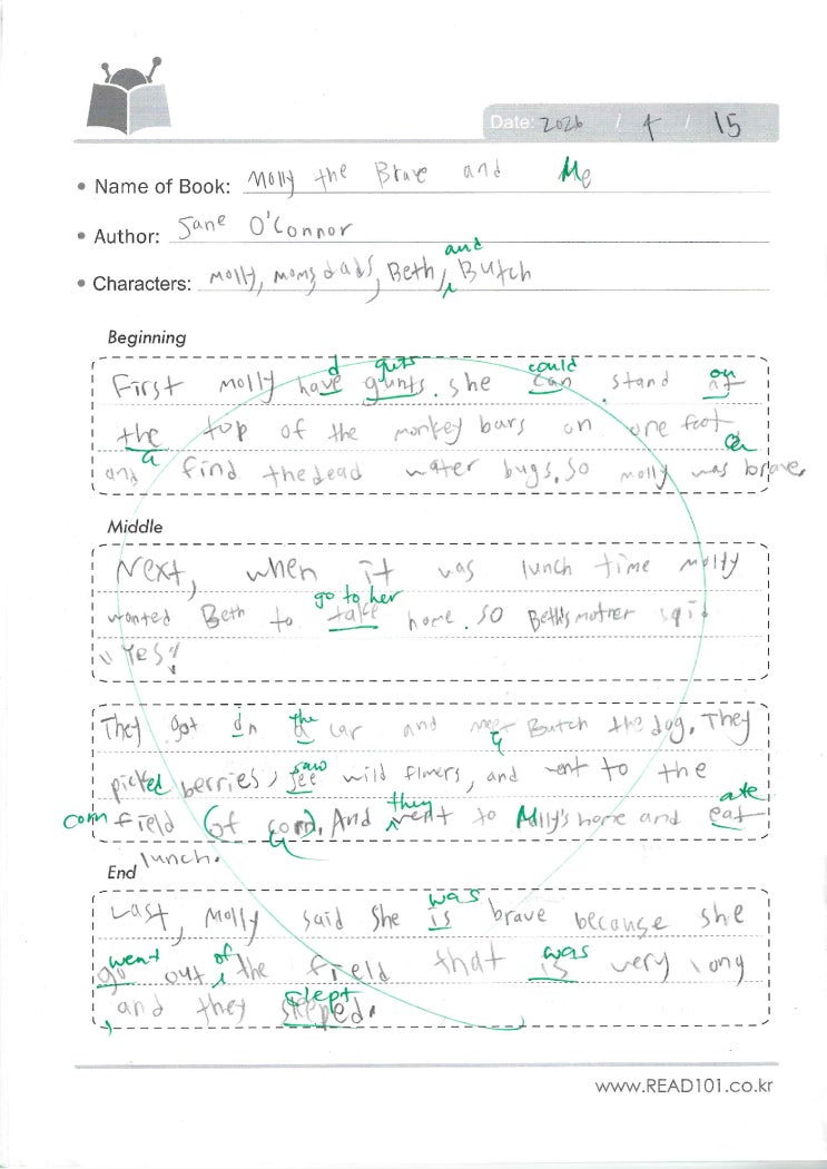 리드101/옥수점 초등 2학년 J*** Best Writing