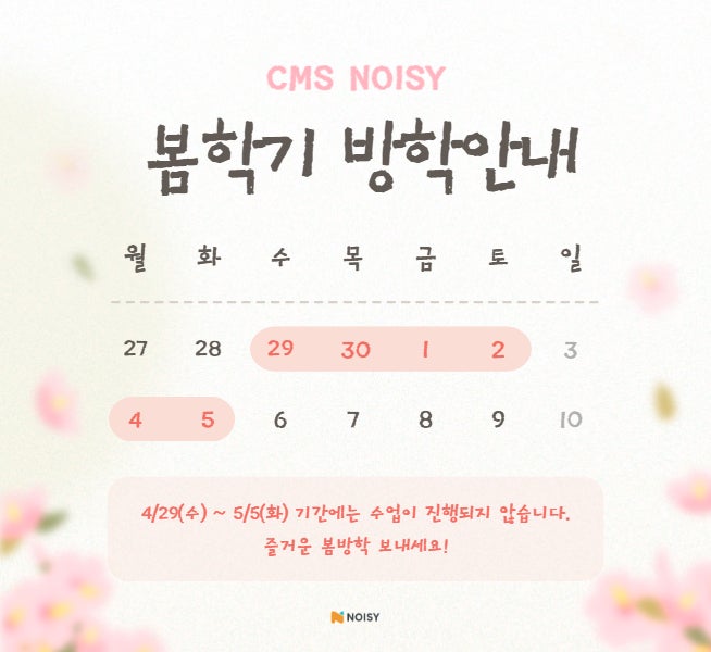 [노이지] 2026 봄학기 방학 안내 (4/29~5/5)