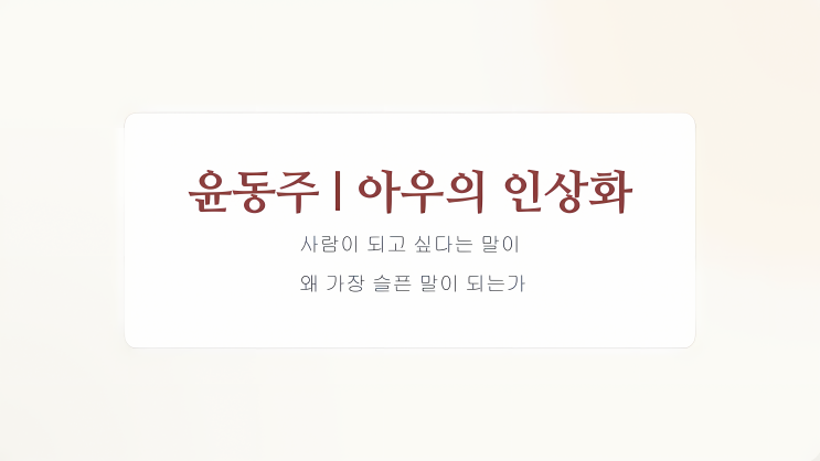 윤동주 | 아우의 인상화 | 사람이 되고 싶다는 말이 왜 가장 슬픈 말이 되는가 작가: 윤동주(1917~1945) 갈래: 현대시(자유시, 서정시) 창작 시기: 1938년 추정 / 유고 시집 「하늘과 바람과 별과 시」(1948) 수록 한 줄 주제: 식민지 현실 속에서 평범한 인간으로 살기조차 허락되지 않는 시대의 비극과 아우를 향한 먹먹한 연민 핵심 키워드: 감각적 대비(생명력과 억압의 충돌) / 수미상관(굳어버린 슬픔의 구조) / 비극적 역설(당연한 꿈이 가장 이루기 힘든 꿈이 되는 시대의 모순) 첫째 단원, 들어가며 — 이 작품이 건네는 진짜 목소리 이 시는 단순히 동생의 얼굴을 묘사한 작품이 아닙니다. 이 시는 우리에게 이런 질문을 던지고 있어요....... <img src="https://blogthumb.pstatic.net/MjAyNjA0MTdfMTI1/MDAxNzc2NDIwMTU0ODMy.y4o1TK03bTNLL9XUW-rPypfC9MbdEBEDennIoDL2bzsg.zitYU5usfwN2ca-UmA5pntrfRLIqSd-uImRkkRpeqY8g.PNG/%C0%B1%B5%BF%C1%D6_%BE%C6%BF%EC%C0%C7_%C0%CE%BB%F3%C8%AD_%C7%D9%BD%C9_%C7%D8%BC%B3.png?type=s3" />