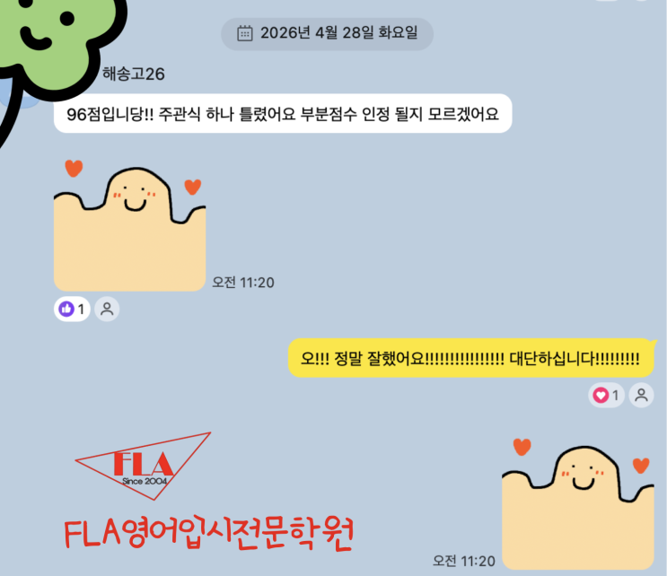 해송고 1학년 영어 96점입니다. FLA영어입시전문학원