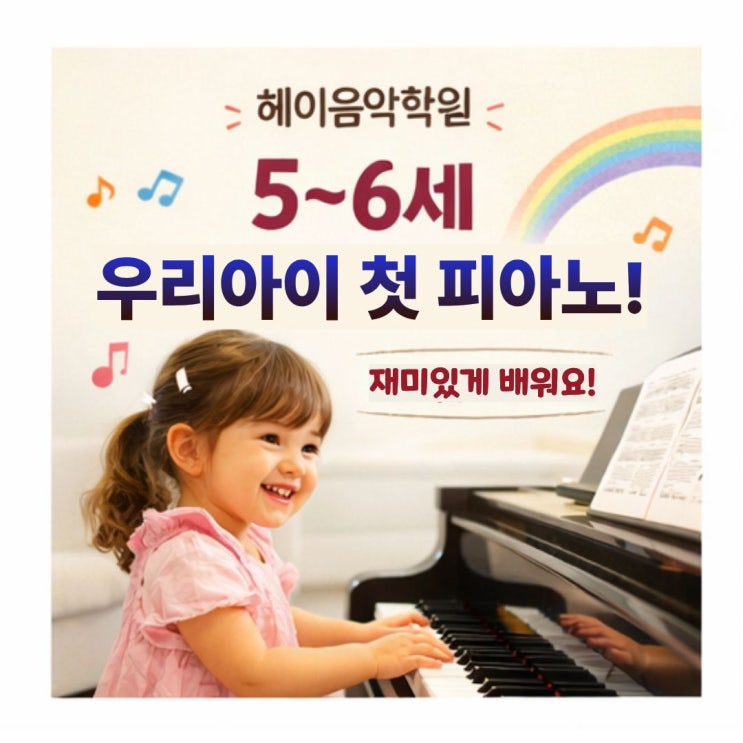 헤이음악학원 5~6세 퍼펙트 피아노 커리큘럼 안내 우리 아이, 처음 피아노 어떻게 시작해야 할까요? 5~6세는 단순히 피아노를 배우는 시기가 아니라 음악을 ‘놀이처럼 경험하는 시기’입니다. 헤이음악학원에서는 기계적인 연주가 아닌 이해 + 표현 + 즐거움을 중심으로 **『퍼펙트 피아노 프로그램』**을 통해 아이들의 첫 음악 경험을 설계합니다. 퍼펙트 피아노 수업이 특별한 이유 ✔️ 눈으로 보고 ✔️ 귀로 듣고 ✔️ 손으로 연주하며 오감으로 배우는 통합 음악 수업 단순히 악보를 읽는 것이 아니라 리듬, 음정, 표현력까지 함께 성장합니다. 5~6세 맞춤 커리큘럼 구성 1️⃣ 음악과 친해지는 “도입 단....... <img src="https://blogthumb.pstatic.net/MjAyNjA0MTNfMjEw/MDAxNzc2MDc2OTA3NDk1.xOGBnYSeGPEXmtVsatdF3InpAYdxIjLgIdtFF5G0quEg.KDUM0BaeDZ-yWUTrXXblydSuun7xCoRJGHzQPc6M50Ag.JPEG/1.jpg?type=s3" />