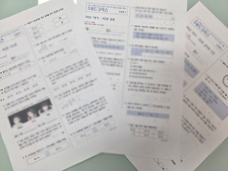 요즘 우리 S위드크리스에서는 단원평가 시험지를 직접 만들고 있답니다. 사실 시중 문제집을 활용하면 훨씬 편하고 빠르겠지만 우리만의 특별한 무언가가 더해지면 좋겠다고 생각했어요. 그래서 결국 또 하나하나 만들게 됐는데요. 한 학년의 한 단원 시험지 하나 만드는데 보통 3~4일 정도 걸려요. 오전에 또 수업 끝나고 틈틈이 만들고, 마지막에는 혹시 틀린 문제 없는지 다시 풀어보면서 확인까지 해요. 솔직히 쉽지는 않습니다. 그래도 이렇게 만드는 가장 큰 이유 중 하나는.. 아이들이 이 단원을 정말 제대로 이해했는지 확인하고 싶어 서기도 해요. 그래서 문제도 조금은 생각하게 만들고, 개념을 정확히 알아야 풀 수 있게 구성하려고 해....... <img src="https://blogthumb.pstatic.net/MjAyNjA0MjNfMjgz/MDAxNzc2OTE0ODAxMzY5._PXOSOIXE17O4i9aRWa_6EXtqZshWCA_21XpCaJcdCUg.Wvloxy0WjtvZ4M5-3R5ySOVTYQRGsVqG-DN-vrnlO4Ig.JPEG/KakaoTalk_20260423_121101070.jpg?type=s3" />