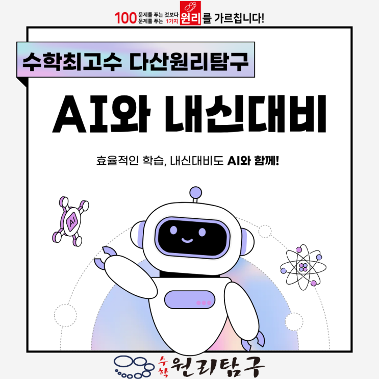다산 수학학원 다산수학원리탐구의 내신은 AI를 이용한 문항분석으로 더욱 강해집니다.