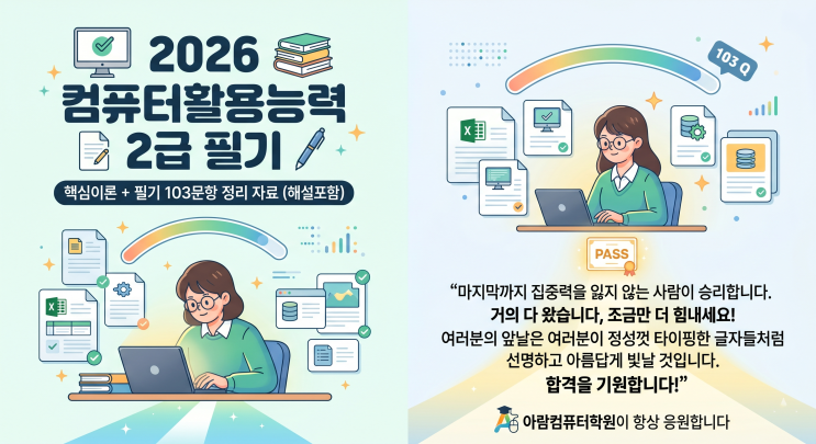 2026 컴퓨터 활용능력 2급 필기 핵심 이론 2과목 103문항 정리