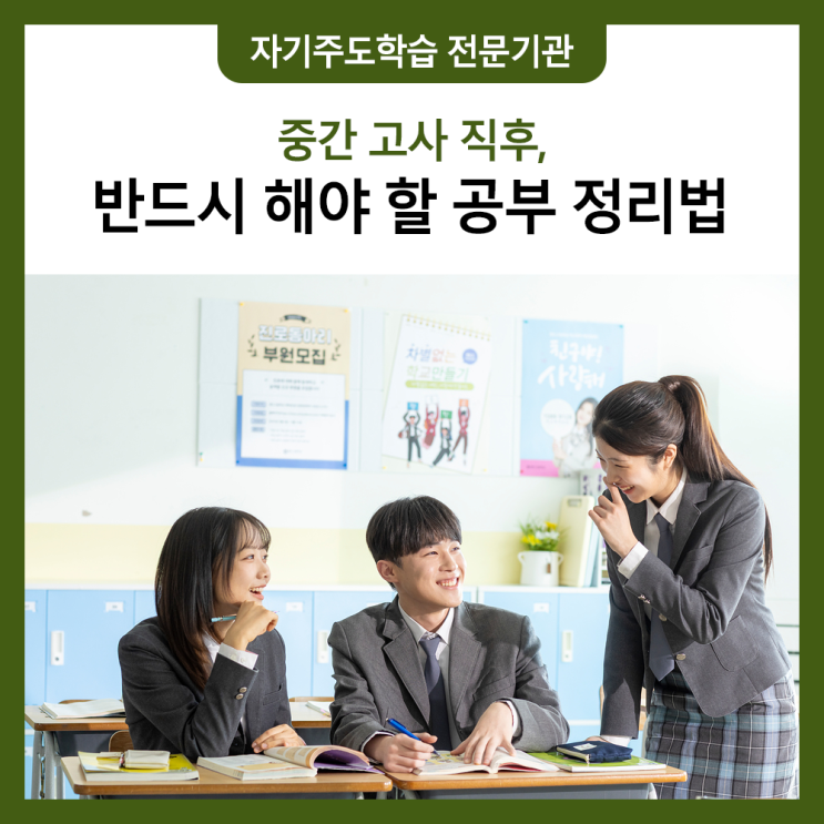 시험이 끝난 순간부터 다음 성적이 시작됩니다 시험이 끝나면 학생도, 학부모도 잠시 긴장을 내려놓게 됩니다. 잘 본 과목은 안도하게 되고, 아쉬운 과목은 결과가 나오면 다시 보자고 넘기기 쉽습니다. 하지만 실제 성적 흐름은 이 시점부터 조용히 갈리기 시작합니다. 시험 직후 무엇을 하느냐에 따라 다음 시험의 방향이 달라지기 때문입니다. 성적이 오르는 학생들은 시험 직후를 그냥 넘기지 않습니다 성적이 꾸준히 오르는 학생들은 시험을 끝난 일정으로만 보지 않습니다. 이번 시험을 다음 성적을 위한 자료로 활용합니다. 어떤 문제에서 흔들렸는지, 어떤 과목에서 시간이 부족했는지, 실수였는지 개념 부족이었는지부터 먼저 정리합니....... <img src="https://blogthumb.pstatic.net/MjAyNjA0MjhfMTY4/MDAxNzc3MzYxNDg0NDY2.1YSzOl1n0fPtXq2LMJN5dKMInEBrElkhYoZEiy7LnTMg.R_ERMGmXWxEVHaFhHGJEVcHOco5BTTSz_2B60tGXXyog.PNG/%C0%BA%B0%E81.png?type=s3" />