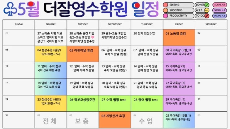 뉴탑학원 5월 일정 안내