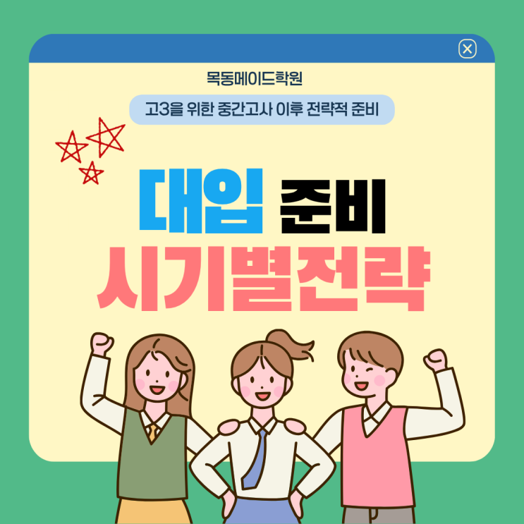 안녕하세요, 양천구수학학원 목동메이드학원입니다. 중간고사가끝난 지금, 아이들에게 필요한 것은 무엇일까요? 바로 대입을 위한 '다음 단계'입니다. 치열했던 중간고사가 마무리되었습니다. 결과가 기대에 못 미쳐 마음 졸이고 계실 학부모님과 학생들이 있을겁니다. 하지만 입시는 마라톤입니다. 반환점을 돈 지금, 가장 위험한 것은 속도가 아니라 '방향'을 잃는 것입니다. 그래서 양천구수학학원 목동메이드에서는 시기별 Step 로드맵을 안내해드리겠습니다. 1st Step. 전략의 재구성 (5월 ~ 6월) 중간고사의 아쉬움을 '전략'으로 메우는 시기 - 학생부 마무리 (세특) 3학년 1학기 생기부는 분량보다 깊이입....... <img src="https://blogthumb.pstatic.net/MjAyNjA0MjZfMjE1/MDAxNzc3MTc5MDA2NDIy.rbWZYoOfl9Ovo9uu6gUiKcwXV4crdj5eWQuA0dQNQ5Ug.SA-lG82GCkNiud70yPbJ8pENUc_BgWtBB9T9TITNJ7kg.PNG/%C1%A6%B8%F1%C0%BB_%C0%D4%B7%C2%C7%D8%C1%D6%BC%BC%BF%E4._%283%29.png?type=s3" />
