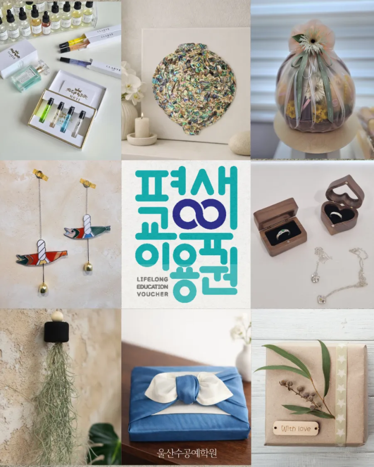 안녕하세요, 울산수공예학원입니다 ^^ 기다리셨던 2026년 평생교육이용권 수강생 모집이 시작되었습니다. 평생교육이용권을 활용하면 부담 없이 다양한 공예 수업을 경험하실 수 있습니다. 손끝에서 완성되는 작품 하나하나가 일상에 작은 힐링과 여유를 더해드립니다 수강 과목 안내 ✔ 선물포장 ✔ 보자기포장 ✔ 과일포장 ✔ 토탈공예 ✔자개공예 ✔ 커피박 공예 ✔ 은공예 ✔ MBTI 향수 제작 ✔ 글라스아트 ✨ 수강 안내 ✔ 수업료(재료비 포함) 35만원 ✔ 자기부담금 없음 ✔ 평생교육이용권으로 전액 수강 가능 재료비 포함, 추가 부담 없이 지금 나를 위한 배움을 시작하세요. 수업문의 052-266-7456 #평생교육이용권 #수....... <img src="https://blogthumb.pstatic.net/MjAyNjA0MjBfMTUy/MDAxNzc2NjU1ODc2NjA5.OArAQ4QhMJhOXR5uWwIQNqzom0_l2Dzkm15L--hEmOAg.9Jd64CIkHNxUvk7sD9yPZmiR9hM9E64u_IE3crX5htsg.PNG/900_1776646783379.png?type=s3" />