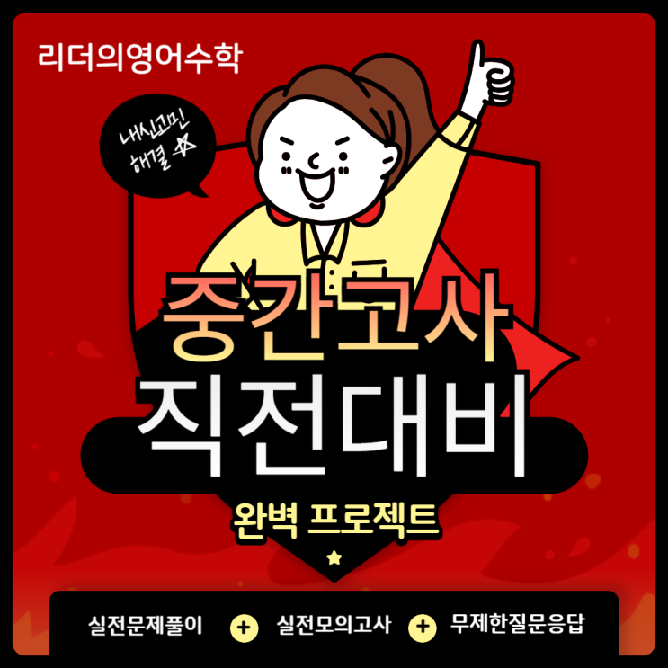 안녕하세요! 리더의 영어 수학입니다. 이번 주부터 본격적으로 1학기 중간고사 시험에 돌입하였습니다. 이사벨고를 시작으로 동래고~동인고~내성고~학산여고~금정고등 리더스와 직전대비를 잘 하여 내신점수 걱정은 없애버리도록 해요 물론 우리 중등부 친구들도 동래중 시작으로 남일중~학산여중~유락여중~안락중등 중등부 친구들은 리더에서 학습한 만큼 실수만 하지 않으면 모두가 A등급을 받을 겁니다^^ 리더스의 장점은 1:1 코칭을 넘어서 본인이 개념과 틀린문제를 설명하고 왜? 이 문제를 틀렸는지 한 번 더 점검 후 변형 문제와 심화문제를 전혀 흔들림 없이 풀고 이해할 수 있는 학습을 진행한다는 점입니다. 공부습관은 초등부터 만들....... <img src="https://blogthumb.pstatic.net/MjAyNjA0MjFfOTkg/MDAxNzc2NzUxNTEzOTM0.d5ohw_WEpcqyFxGpIEttRHAcmzzc1sfW2nN2dlHT1CQg.UpzGk71P25IxwkD0gksUAO-iQNHOmgAK4yx3mfBcevUg.PNG/%C1%A6%B8%F1%C0%BB_%C0%D4%B7%C2%C7%D8%C1%D6%BC%BC%BF%E4_-001.png?type=s3" />