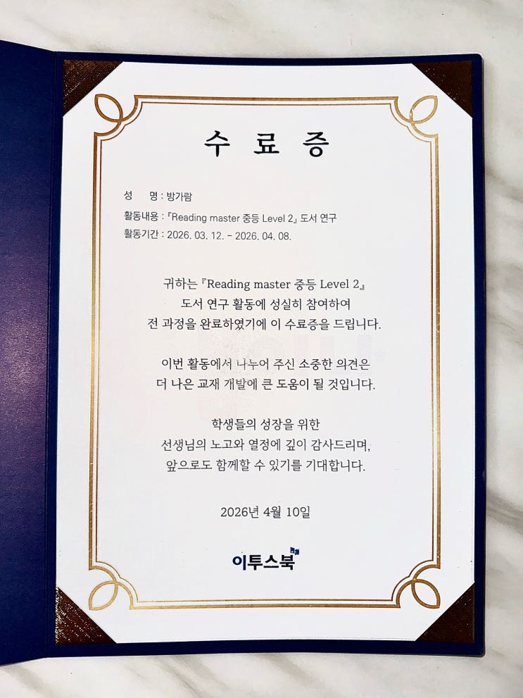 <이투스북 교재 검토 과정> <수료증> 수업 중에는 통화가 많이 어려우니 모든 문의는 '문자' 보내주시면 감사드리겠습니다❤️ 010 5180 6826 #글로리에듀학원 #창원입시학원 #창원보습학원 #사파동영어학원 #신월동영어학원 #사파동학원 #사파동전과목학원 #사파동영어 #사파동수학 #토월초학원 #신월동학원 #창원전과목학원 #신월고학원 #신월중학원 #사파중학원 #사파동국어 #사파동사회 #사파동과학 #창원소수정예 #창원내신 #창원내신관리 #창원입시 #창원입시전문 #창원고등학교내신관리 #창원수능학원 #창원입시전문 #창원내신전문 #사파동내신 #사파동수능 #창원학원추천 #사파동학원추천 <img src="https://blogthumb.pstatic.net/MjAyNjA0MjZfMjcz/MDAxNzc3MTkyNDE2OTk0.2ehj-MO7f5b_KSd-xJyDtQ3_9x4hibjmIsfSMut1X14g.qyNXszuHixzxgGLEnxsYu46rmqXkRaKOrjqNvzMJ7SAg.JPEG/IMG_5561.JPG?type=s3" />