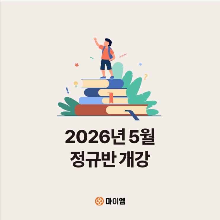 안녕하세요. 마이엠입니다. 2026년 5월 정규반 개강 안내입니다. 마이엠 초등관 개강 마이엠 중등관 개강 마이엠 영재관 개강 신입생 상담, 테스트 신청이 필요하시다면? 아래 이미지를 클릭하세요! ▼▼▼▼▼▼▼▼▼ <img src="https://blogthumb.pstatic.net/MjAyNjA0MjFfMTMw/MDAxNzc2Njk5Mjc4OTgw.eVV9rRWpCbacH2LrTC1Z6B8uUJvCOfWK6ouhfZeEZF0g.VnBiCN79d02TyB010mj1J9jICczbXcqEWJg72_BI58Yg.JPEG/5%BF%F9%B0%B3%B0%AD.jpg?type=s3" />