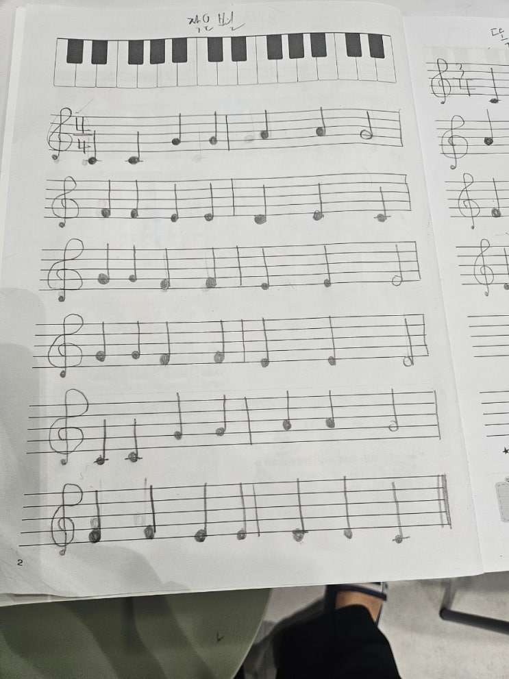안녕하세요 오늘은 우리 학원에서 진행하고 있는 ‘악보 그리기 수업’의 장점을 소개해드릴게요. 단순히 연주만 하는 것이 아니라 아이들이 음악을 더 깊이 이해할 수 있도록 돕는 중요한 과정입니다. ✔️ 1. 음표와 리듬을 정확하게 이해해요 악보를 직접 그리면서 4분음표, 8분음표의 길이를 자연스럽게 익힙니다. 눈과 손을 함께 사용하기 때문에 박자 개념이 확실해집니다. ✔️ 2. 악보 읽는 속도가 빨라져요 직접 써본 아이들은 처음 보는 악보도 빠르게 읽습니다. 계이름과 음의 위치가 익숙해지면서 초견 능력이 향상됩니다. ✔️ 3. 집중력과 사고력이 자라요 악보 그리기는 단순한 쓰기가 아니라 규칙과 위치를 함께 생각....... <img src="https://blogthumb.pstatic.net/MjAyNjA0MTVfMTcg/MDAxNzc2MjQ0MTYyNDk0.Ev4nsNxYI8aqmzGcL5933lYKd4oB91e-9mWL4TBrCuEg.dvT0MU_u8a-Of0fl5zuONQSMIvTn66bc6f6deVncS7og.JPEG/900_20260415_171846.jpg?type=s3" />