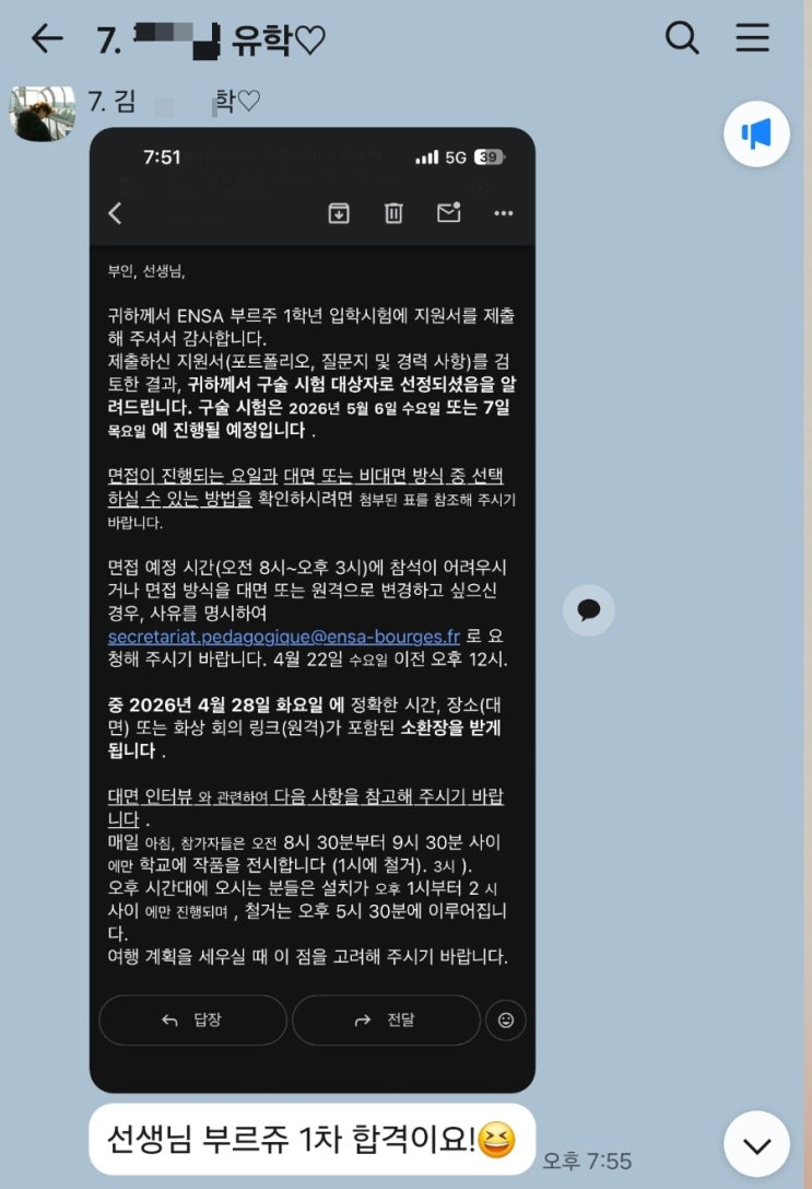 올해도 아뜰리에수목의 가치가 증명되고 있습니다. 전원 보자르 1차 합격 중이네요! 모두 축하합니다~!!! 이제 발표 시작이라 앞으로 훨씬 더 많은 합격 소식 예정입니다~^^ 2026 보자르 1차 합격 명단 ❤️아뜰리에수목 유학미술학원❤️ <박♡우> 부르쥬 보자르 보르도 보자르 뚜르,앙제,르망 보자르 <정♡우> 생떼티엔 보자르 보르도 보자르 <김♡임> 부르쥬 보자르 그르노블 보자르 <정♡은> 생떼티엔 보자르 전원 합격은 늘 선물 같은 일입니다. 아뜰리에수목에서 수많은 전원 합격이 가능했던 건, 저의 정확한 교육 방향과 학생들의 용기와 성실이 빚어낸 일입니다. 위....... <img src="https://blogthumb.pstatic.net/MjAyNjA0MTdfMjIg/MDAxNzc2Mzk1MTA0MzIz.NMOVJnBoaYw2oaCY-tA560Gf6RbTpJTokQizBpkW-Ncg.rE6RKlcciFfUWWdyHPIkEHU34zYm66hS6-22GLXRjiYg.JPEG/900%A3%DF1776394558123.jpg?type=s3" />