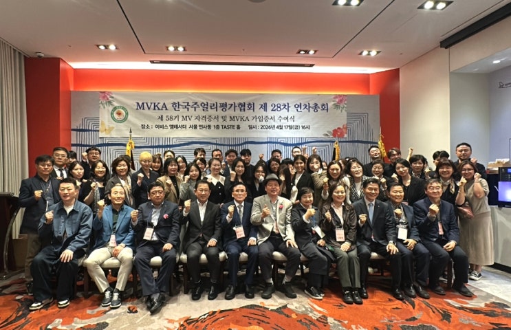 지난 4월 17일 종로에 위치한 이비스 앰배서더 호텔 1층홀에서 주얼리평가사 MV58기 졸업식과 한국주얼리평가협회의 정기총회 행사가 거행되었습니다 이날 행사에서 MV58기 졸업생 15명이 MV자격증서와 한국주얼리평가협회 가입증서를 수여받았습니다~ 이번 58기 졸업생 가운데 박소영씨가 우수상을 수여받았고, 박민수, 김득화 및 곽지현씨는 봉사상을 수여받았습니다. 그리고 졸업식 후에는 박제현 강사님의 수줄입 통관에 대한 세미나 강의가 1시간 동안 이어져 졸업생 및 참석 회원들로부터 큰 호응을 받았습니다 그리고 한형배회장 주도로 정기총회가 개최되었고 이어서 1시간 정도의 저녁뷔폐 시간이 끝나고 즐거운 경품추첨 행사를 끝으로....... <img src="https://blogthumb.pstatic.net/MjAyNjA0MThfMjkg/MDAxNzc2NTA3NzM2NjQ0.pDGxw-pOpZzOxaSQKdL0CtGLvHRI8cfOaJGvC9lZTkUg.ysAiivRnAJ6DiODR9KMzb4q7nMzkbnoYSmiGZaoJnJIg.JPEG/900_1776505505619.jpg?type=s3" />