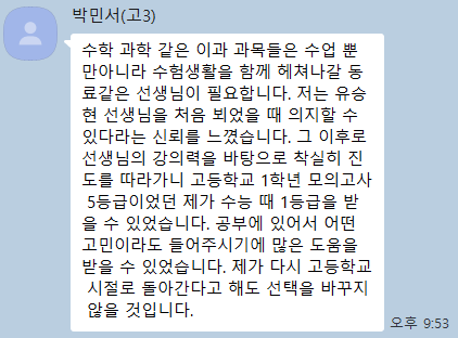 5등급의 반전 드라마, 성균관대 합격으로 증명한 유승현 선생님의 수학·과학 밀착 케어