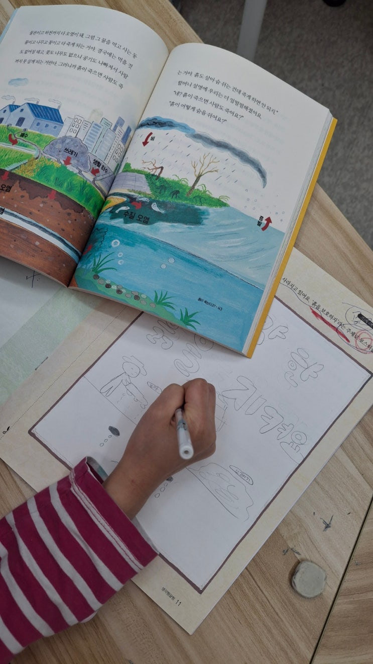 초등 3학년 아이들과 함께한 ‘흙을 보호하자’ 주제 독서논술 수업을 소개합니다. 이번 수업은 교과와 연계된 필독서를 읽고 핵심 내용을 스스로 찾아 정리한 뒤, 자신의 생각을 포스터로 표현하는 활동으로 진행되었습니다. 아이들은 책 속에서 ‘왜 흙을 보호해야 하는지’, ‘환경 오염이 우리에게 어떤 영향을 주는지’를 이해하고, 이를 자신만의 언어와 그림으로 풀어냈습니다. 이 과정에서 자연스럽게 길러지는 힘은 단순한 독해력이 아닌 ✔ 핵심 내용 파악 능력 ✔ 구조적으로 생각하는 힘 ✔ 자신의 생각을 표현하는 글쓰기 능력입니다 뜻밖에독서논술은 읽기에서 끝나지 않고 ‘생각 → 정리 → 표현’까지 연결되는 수업으로 아이의....... <img src="https://blogthumb.pstatic.net/MjAyNjA0MjBfMjgg/MDAxNzc2NjY0NTM2ODU4.2SotINiPkzlANzFLNjoeLvZX2EIwiYsHiKnxp4mWs24g.2MDSdryzyTxhxGzasn6J6kvvSl2II0ffl-BlFuzrhsUg.JPEG/900_20260418_115334.jpg?type=s3" />