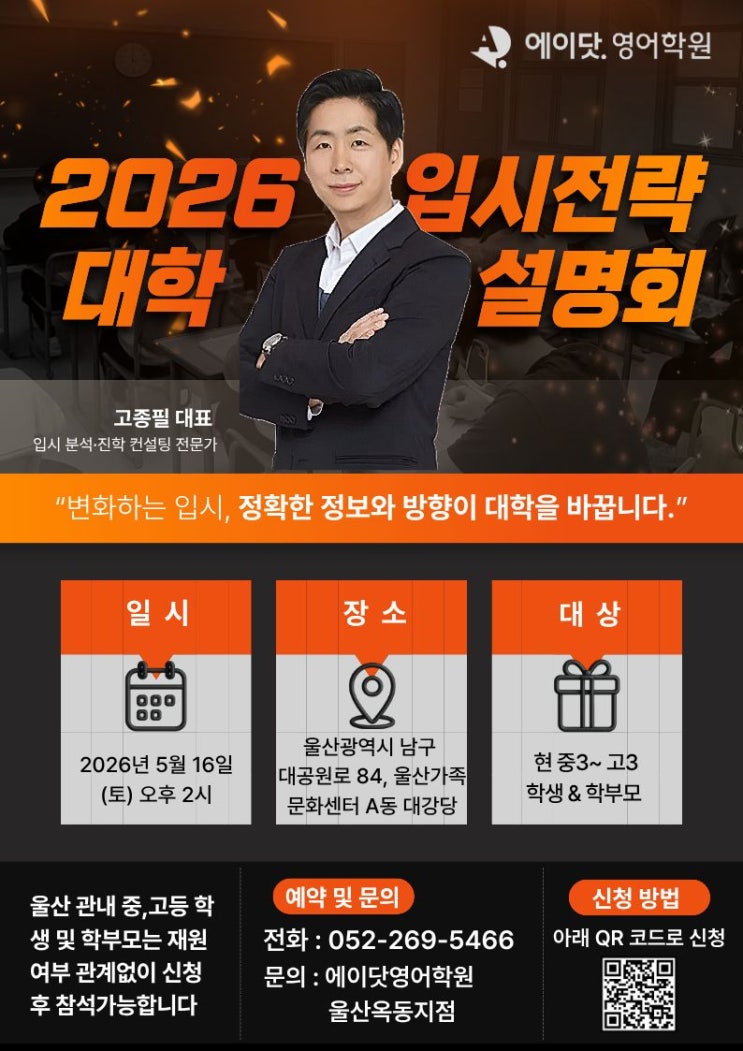 [울산옥동 영어학원 에이닷] 2026년도 대입, '정확한 정보'가 대학을 바꿉니다. - 대학 입시 전략 설명회