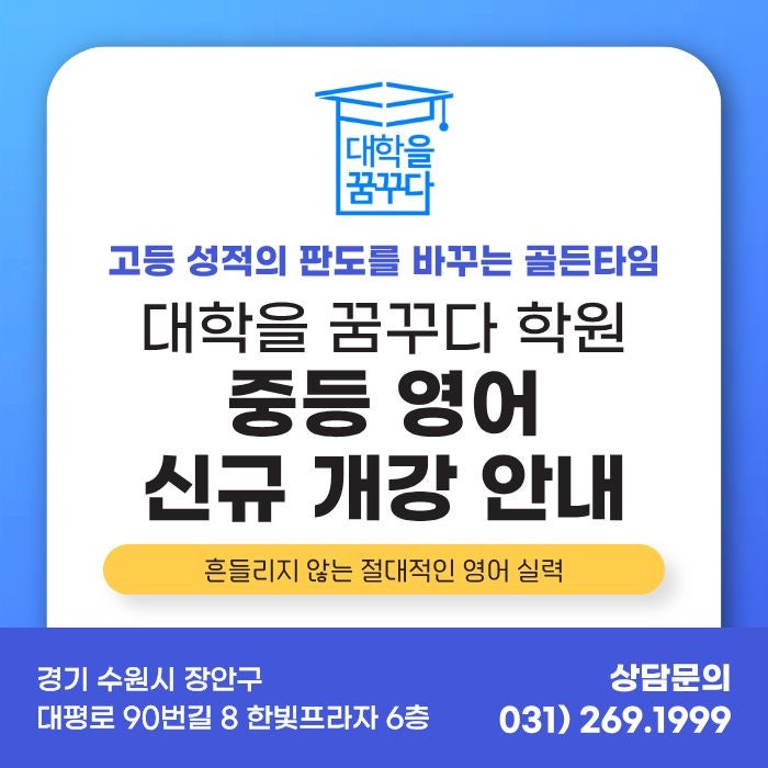 장안구 정자동 대학을 꿈꾸다 학원 중등 영어 신규 개강 - 고등 성적의 판도를 바꾸는 골든타임