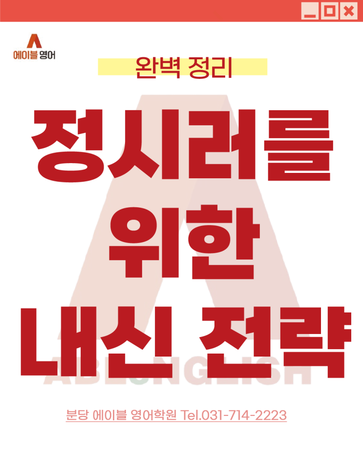 정시니까 내신을 버린다고? 더 이상 이러면 안됩니다! 내신까지 챙겨야 하는 정시러를 위한 가성비 내신 전략 - 분당영어학원 에이블영어학원