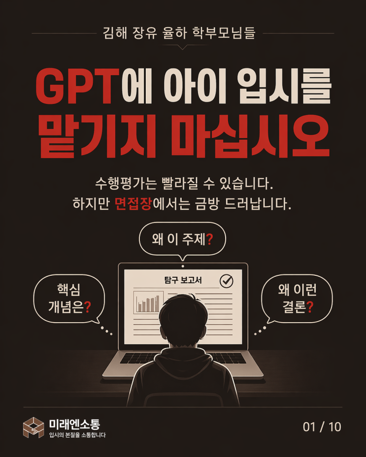 [미래엔소통] GPT에 자녀의 입시를 맡기지 마십시오. [창원김해장유율하 토론, 스피치, 면접 디베이트 독서 논술학원]