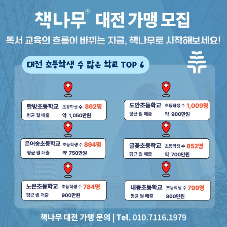 대전 초등학생 수 많은 학교 TOP6|학원 창업 입지 분석 (책나무 가맹)