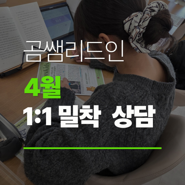 많은 학부모님께서 상담 오시면 묻는 질문이 있습니다. "우리 아이가 학원에서 정말 집중해서 읽고 있나요?" "책 읽는 게 공부에 실질적인 도움이 되고 있는 걸까요?" 학부모님의 불안은 '성적' 이전에 '내 아이가 제대로 하고 있는지'에 대한 궁금증에서 시작됩니다. 곰쌤리드인은 단순히 책만 읽는 곳이 아닙니다. 데이터로 증명하고, 눈으로 확인시켜 드립니다. 1. 막연한 칭찬 대신 '객관적 데이터'로 말합니다 상담의 차별화는 데이터에서 나옵니다. 곰쌤리드인은 정밀한 교과도서지수 진단테스트를 통해 아이의 현재 읽기 능력을 정확하게 파악합니다. 진단 결과에 따른 맞춤 코스: 아....... <img src="https://blogthumb.pstatic.net/MjAyNjA0MjhfNjAg/MDAxNzc3MzM1MTc2Nzc2.Gj9kCb2P1-T3PzechhuC_do2y60Tb1p2Sfr8bpxUmVAg.-JJUHomohYNdq6NVrT3VCsGbnaC6No8VTHMTMhte8log.PNG/900_%BF%AC%B5%CE%BB%F6%B0%FA_%C8%F2%BB%F6_%BD%C9%C7%C3%C7%CF%B0%ED_%B4%DC%BC%F8%C7%D1_%BB%E7%C1%F8_%B9%E8%B0%E6_SNS_%BA%ED%B7%CE%B1%D7_%C4%AB%B5%E5%B4%BA%BD%BA_%BD%E6%B3%D7%C0%CF_%C0%CE%BD%BA%C5%B8%B1%D7%B7%A5_%C6%F7%BD%BA%C6%AE_20260428_091236_0000.png?type=s3" />