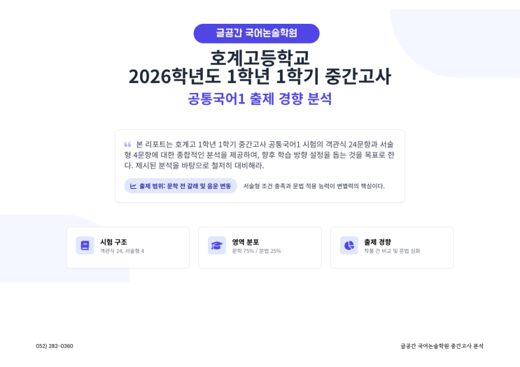 [글공간 국어논술] 울산 매곡 국어학원 글공간 -2026학년도 호계고등학교 1학년 1학기 중간고사 시험 분석