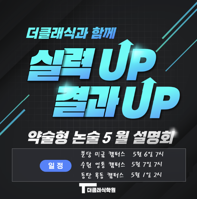 안녕하세요. 분당 미금, 수원 영통, 동탄 목동에서 오직 약술형 논술만을 연구하고 전문적으로 지도하는 더클래식학원입니다. 더클래식학원 5월 설명회 일정입니다. 오늘은 2027학년도 대입을 준비하는 수험생분들을 위해 약술형 논술 전형의 수능최저기준에 있어서 핵심 변동 사항과 합격의 당락에 중요한 영향을 주는 수능 최저 학력 기준에 대해 심층 분석해 보려 합니다. 최근 대입 시장에서 중위권 수험생들의 희망으로 떠오른 약술형 논술은 2026학년도부터 강남대와 국민대가 합류하며 그 규모가 더욱 커지고 있습니다. 다가오는 2027학년도에는 어떤 변화가 있는지, 어떻게 준비해야 할지 핵심 내용을 정리해 드립니다. 1. 약술형 논술 선....... <img src="https://blogthumb.pstatic.net/MjAyNjA0MjFfMjA5/MDAxNzc2NzYyODk5MjQz.l-Pj-QjI8wIg15_V6wqnBNKfrY-SzwKW8jXOxN6bi7Eg.NXO9cW-dpHHyzLjnLmqiESJVBrMucKe-d_Ga4SHP-JMg.PNG/image.png?type=s3" />