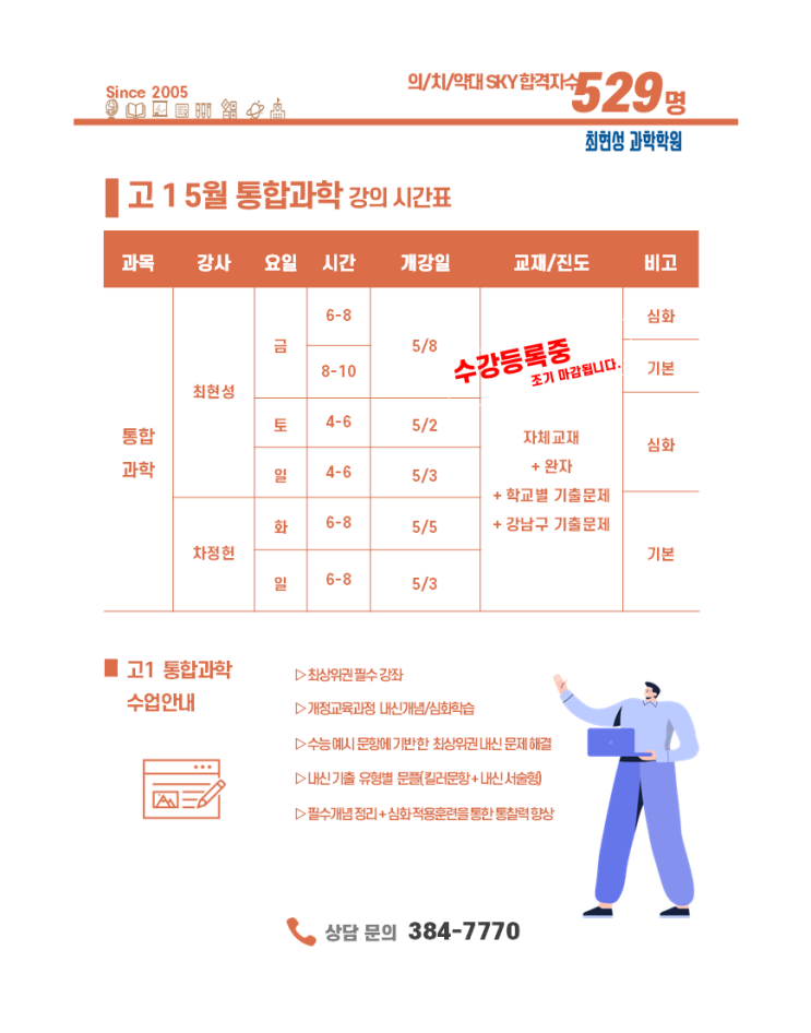 [고1 통합과학1]5월 강의 시간표- 수강등록중