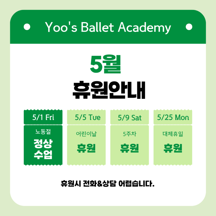 <옥길동> 유스발레아카데미 5월 휴원 안내