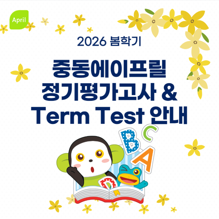 [부천청담에이프릴/부천중동에이프릴/신중동초등영어학원/중동어학원추천] 중동에이프릴 2026 봄학기 정기평가고사&텀테스트 안내