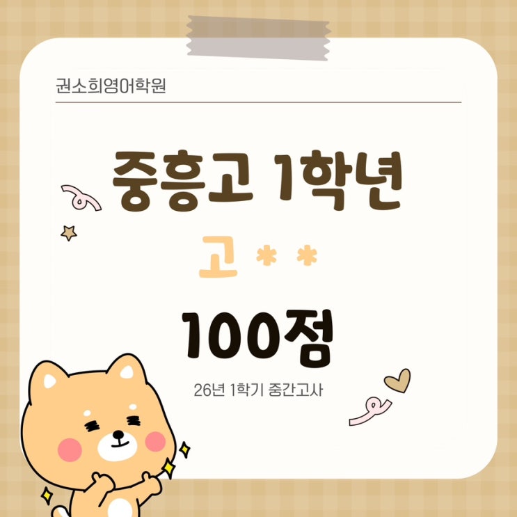 안녕하세요~ 고등입시영어전문 권소희영어 원장 권소희입니다:) 고등학교 입학하고 첫 시험 치르느라 우리 학생들 고생했습니다❣️❣️ 이번 중흥고 시험은 객관식에서는 어법은 기존 보다 평이, 다만 꼼꼼하고 지구력 읽기가 중요했고 서술형은 대비가 안된 친구들은 손 대기도 힘들어 했겠다 싶은 시험이었습니다. 첫 시험이라서 아직 올해 중흥고1학년 학생들이 영어를 어느정도로 하는지 정확히 알지 못하지만 1컷은 한문제 정도 틀린 친구들까지 일 듯 합니다 혹시 이번 시험 결과가 조금 아쉽더라도 너무 멘붕 오지 마세요! 이제 학교 스타일 확실히 파악했으니, 부족했던 부분 보완해서 다음 기말 준비 잘 하면 됩니다. (아자아자!)✊❣....... <img src="https://blogthumb.pstatic.net/MjAyNjA0MjhfMTAz/MDAxNzc3MzYyNjQ0NzEy.ClPLfZa7qCqBYUqpPWyhmErv6Net-nmdPuf3l06IAOgg.x9cnE1dBLdVU_Q-VkHaUAkZee6z3Wzs8iBLCmnck4Dwg.JPEG/IMG%A3%DF7768.JPG?type=s3" />