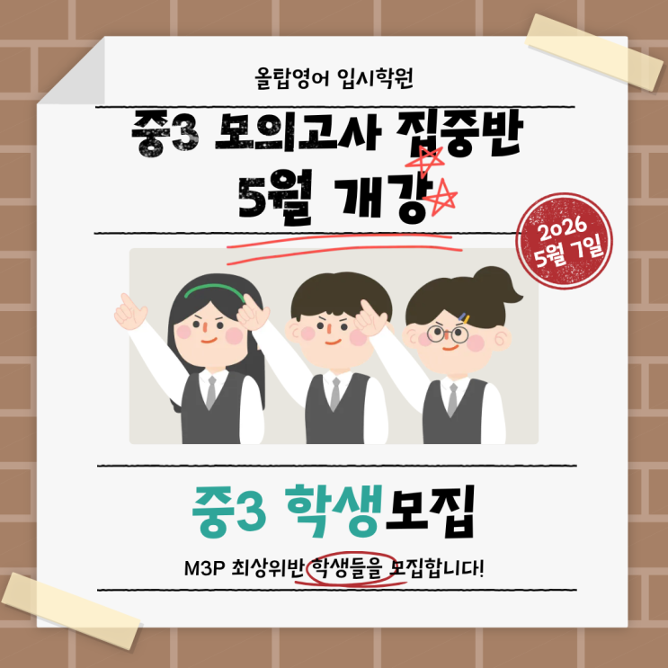 중3 모의고사 집중반 5월 개강|M3P 최상위반 학생 모집