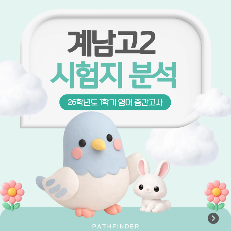 안녕하세요! 패스파인더 영어학원입니다:) 오늘은 계남고 2학년 2026년도 1학기 중간고사 영어 시험지 분석을 해보려고 합니다. 2학년 친구들, 올해 첫 시험 보느라 고생 많았어요! 그럼 바로 보러 가볼까요? 이번 시험의 출제 비중부터 살펴볼까요? 모의고사: 19문항 (무려 79%!) 교과서: 5문항 (단 21%) 더 이상 교과서 본문만 달달 외우는 방식으로는 절대 상위권에 진입하기는 어렵습니다. 모의고사 지문을 얼마나 깊이 있게 이해하고, 다양한 유형의 변형 문제에 얼마나 잘 대처하는지가 성적을 좌우했습니다. 단순 내용 파악을 넘어 어법, 어휘, 빈칸 추론, 순서/삽입 등 다채로운 유형으로 지문을 '재창조'하여 출제했기 때문에....... <img src="https://blogthumb.pstatic.net/MjAyNjA0MjhfMTYy/MDAxNzc3Mzc2NjUwNTk3.1dFLj_gUf8wqQKEshTKynSS_AbnE9CtHaRUSZ_ozqksg.wO9BfsuAyDDSO6Co9OvZ0fHaa1p1ZTpI0u9MMelFmygg.PNG/%C1%A6%B8%F1%C0%BB_%C0%D4%B7%C2%C7%D8%C1%D6%BC%BC%BF%E4..png?type=s3" />